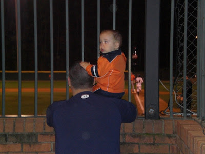 Trent was very interested in the game. (Hope for Daddy) Even though he was a little restless sitting in the stands he loved being this close to the field and sitting on Daddy's shoulder.